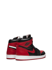Air Jordan 1 Retro High OG NRG "Homage 2 Home (Non-Numbered)" sneakers In 2018 Jordan Brand combined two of the most iconic Air Jordan 1 colorways of all time into one special shoe. The limited edition Air Jordan 1 "Homage to Home" is split down the middle, with the "Chicago" colorway on the medial side and the "Bred" colorway on the lateral side. This truly unique sneaker celebrates the city of Chicago where Michael Jordan became a legend. A numbered edition of the Air Jordan 1 "Homage to Home" released exclusively in Chicago. This sneaker is part of the non-numbered edition that was available globally. Imported Composition Calf Leather 100%