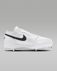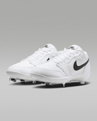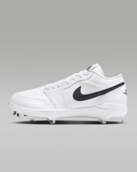 Run 'em in Jordan style. These cleats bring the iconic look of the AJ1 to the baseball diamond. A synthetic leather upper helps keep 'em durable, while Nike Air units and steel cleats give you comfortable cushioning and exceptional on-field traction. Benefits - Synthetic leather upper pulls inspiration from the AJ1 to provide structure and durability with an iconic look. - Nike Air unit in the heel offers lightweight, responsive cushioning. - Nine-cleat configuration helps offer excellent traction. Product Details - Shown: White/White/Black - Style: FV2270-101