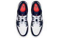 PRODUCT INFORMATION MODEL NO: 553558-481 RELEASE DATE: 2023-06-14 SERIES: Air Jordan 1 NICKNAME: Obsidian Ember STYLE: Sports SEASON: All Season SOLE MATERIAL: Rubber Sole TOE TYPE: Round Toe HEEL TYPE: Flat heel COLOR WAY: Obsidian/Ember Glow-White DESCRIPTION The Air Jordan 1 Retro Low 'Obsidian Ember Glow' is a classic basketball sneaker that was first released in 1985. Inspired by the popular AirForce 1 of the time, it features a reduced midsole thickness for a lighter weight and improved ground feel. The iconic wings logo and Air Sole cushioning in the heel provide a stylish and comfortable fit. The obsidian and ember glow upper is contrasted by white leather at the toe and ankle, and the heel is finished with a colorful ball and wings logo. Perfect for the court, this sneaker is a timeless classic.