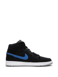 Air Jordan 1 Mid sneakers Always fresh and timeless, the Air Jordan 1 Mid is one of the most iconic sneakers of all time. This version of Michael Jordan's signature silhouette reinvented the classic design with a new colour scheme that boasts red and blue Swoosh logo details. Highlights - Black/red/white/blue - Signature swoosh logo detail - Signature air jordan wings logo - Signature jumpman motif - Round toe - Front lace-up fastening - Flat rubber sole - These styles are supplied by a premium sneaker marketplace. stocking only the most sought-after footwear, they source and curate some of the most hard to find sneakers from around the world. Imported Composition Sole: Rubber 100% Outer: Polyester 100% Lining: Polyester 100%