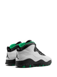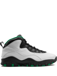 Air Jordan 10 "Seattle Supersonics" sneakers The Air Jordan 10 'Seattle Supersonics' is an original colourway of the 1990s-era Jordan 10 model that features the team colours of the beloved former Seattle Supersonics NBA basketball team. Originally released back in 1995 as a part of Nike’s 'City Series' of Air Jordan 10, the 'Seattle' makeup is arguably the most legendary of the pack. The 'Sonics' Air Jordan 10 features a white leather base with contrasting black leather appearing on the eyelets and ankle collar. Accenting the upper is a plush green inner lining. Finishing touches include a black rubber midsole with the model's traditional striped outsole with Sonics-specific green and yellow accents. Release date: October 19th, 2019. Imported Composition Calf Leather 100%