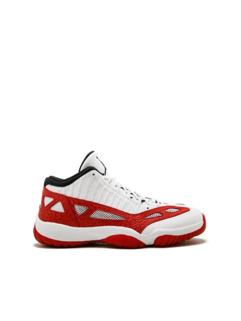 Air Jordan 11 Low IE "Black Cement" sneakers The Air Jordan 11 Low IE “Black Cement” is the alternate low-top edition of Michael Jordan’s eleventh signature shoe that takes inspiration liberally from one of the greatest colorways ever— “Black Cement." This special Summer 2020 release of the Jordan 11 Low IE, which stands for “International Exclusive,” is an ode to the Jordan 3 “Black Cement” design. Jordan briefly wore this silhouette in a “Bred” makeup during the ‘96 NBA Playoffs. As for this shoe, black leather forms the base of the upper, and is contrasted by a toe-to-heel elephant print overlay. A Cement Grey liner and leather tongue with red embroidered Jumpman branding contrasts the black cotton laces. The look is drawn to a close with a white midsole and semi-translucent outsole, which borrows the familiar forefoot and heel traction pod and carbon fiber midfoot plate. Highlights - Black/cement grey/fire red - Leather/nylon - Logo-embossed tongue - Front lace-up fastening - Round toe - Ridged rubber sole - These styles are supplied by a premium sneaker marketplace. stocking only the most sought-after footwear, they source and curate some of the most hard to find sneakers from around the world. Imported Composition Leather 100%