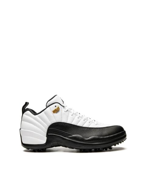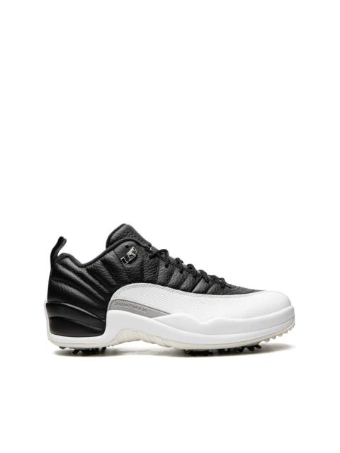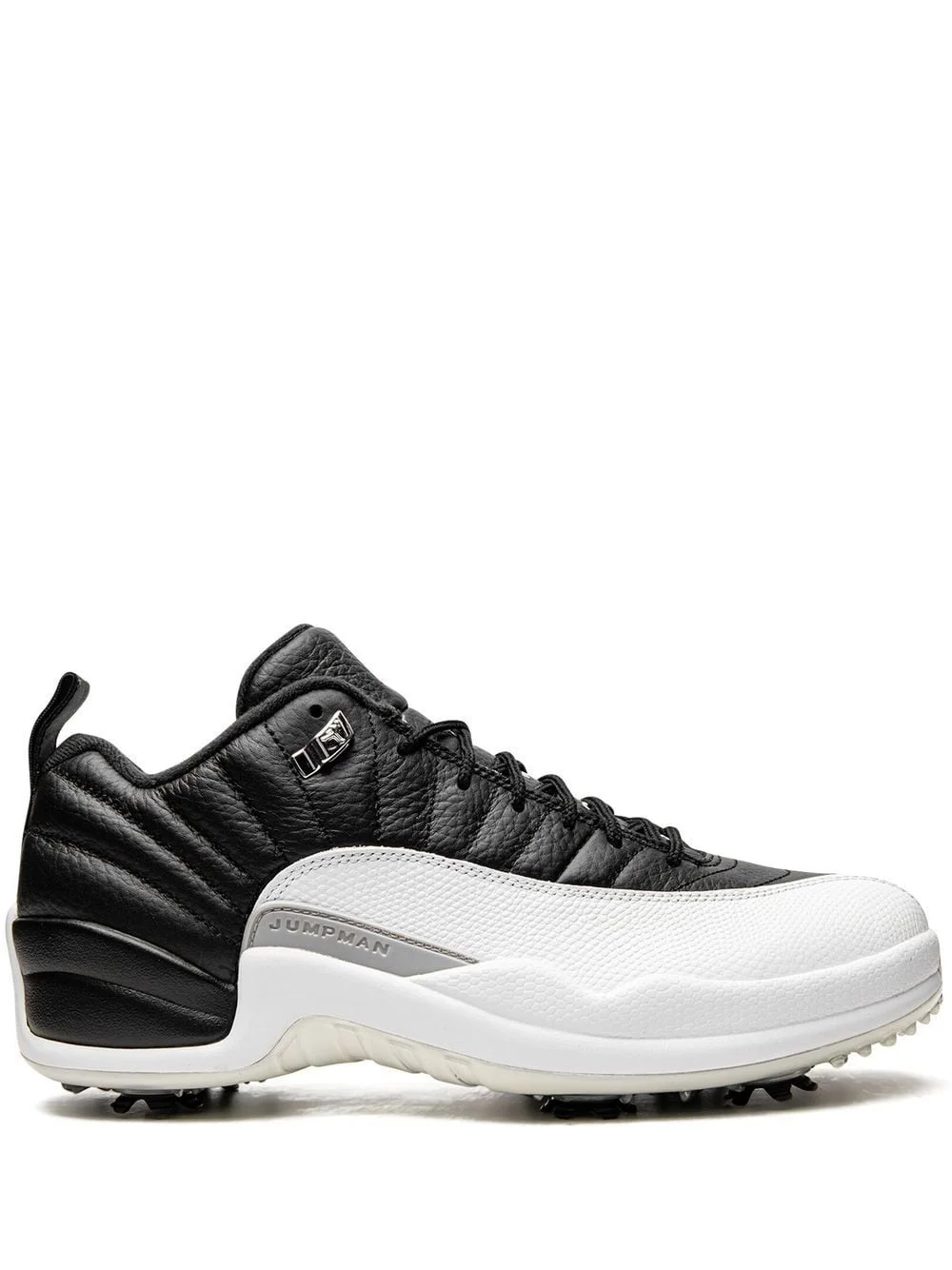 Air Jordan 12 Low "Playoffs" golf shoes Michael Jordan's classic sneaker is back - this time, for golf. The Air Jordan 12 Low is crafted from leather, in black and white, and sits atop a full-length Zoom Air unit and a hybrid outsole with integrated traction and 7 removable spikes. The signature Jumpman logo appears on the tongue, in red, contrasting with the rest of its design. Highlights - Black/white - Leather - Signature jumpman motif - Almond toe - Front lace-up fastening - Branded insole - Pull-tab at the heel - Branded insole - Soft-spike sole - These styles are supplied by a premium sneaker marketplace. stocking only the most sought-after footwear, they source and curate some of the most hard to find sneakers from around the world. Imported Composition Leather 100%