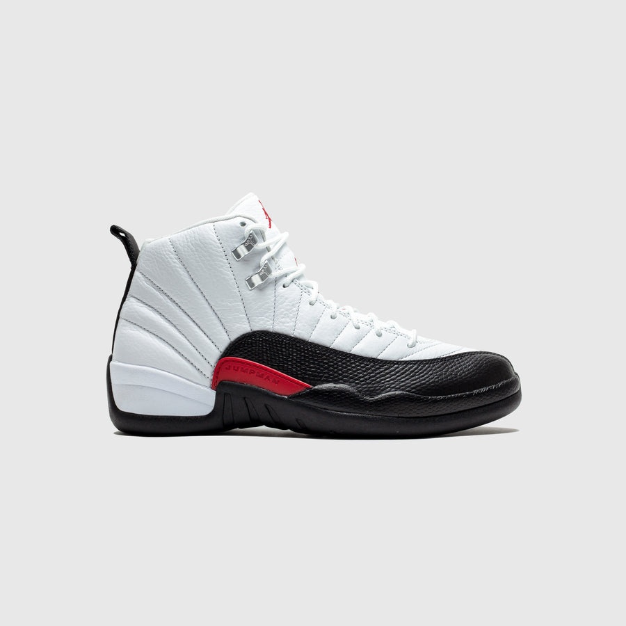 - CT8013 162 - White/Gym Red-Black - The Air Jordan 12 Retro returns in a flipped Red Taxi design that riffs on the original 1996 colorway. - White tumbled leather upper - Black leather overlay mudguard - White leather tongue with Gym red "TWO 3" embroidery & "JUMPMAN" logo - Gym red "JUMPMAN" TPU plate - Black foam midsole with full-length "ZOOM AIR" unit - Black rubber outsole