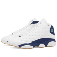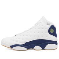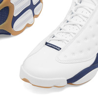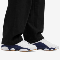 The iconic Air Jordan 13 Retro arrives in two-tone colourway this season to continue its long-lasting legacy. Staying true to the blueprint, they feature dimpled overlays up top and a signature wavy midsole below. Synthetic suede panelling in navy spans from the midfoot to the heel, adding contrast and depth. The finishing touch comes in the firm of the AJ13 holographic eye, revealing an image of MJ himself. - Leather Upper - Dimpled Leather Overlays - Synthetic Suede Overlays - Holographic Logo Hardware - Embroidered Branding - Rubber Sole - Gum Outsole