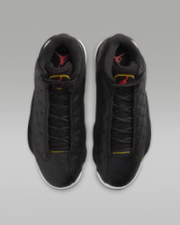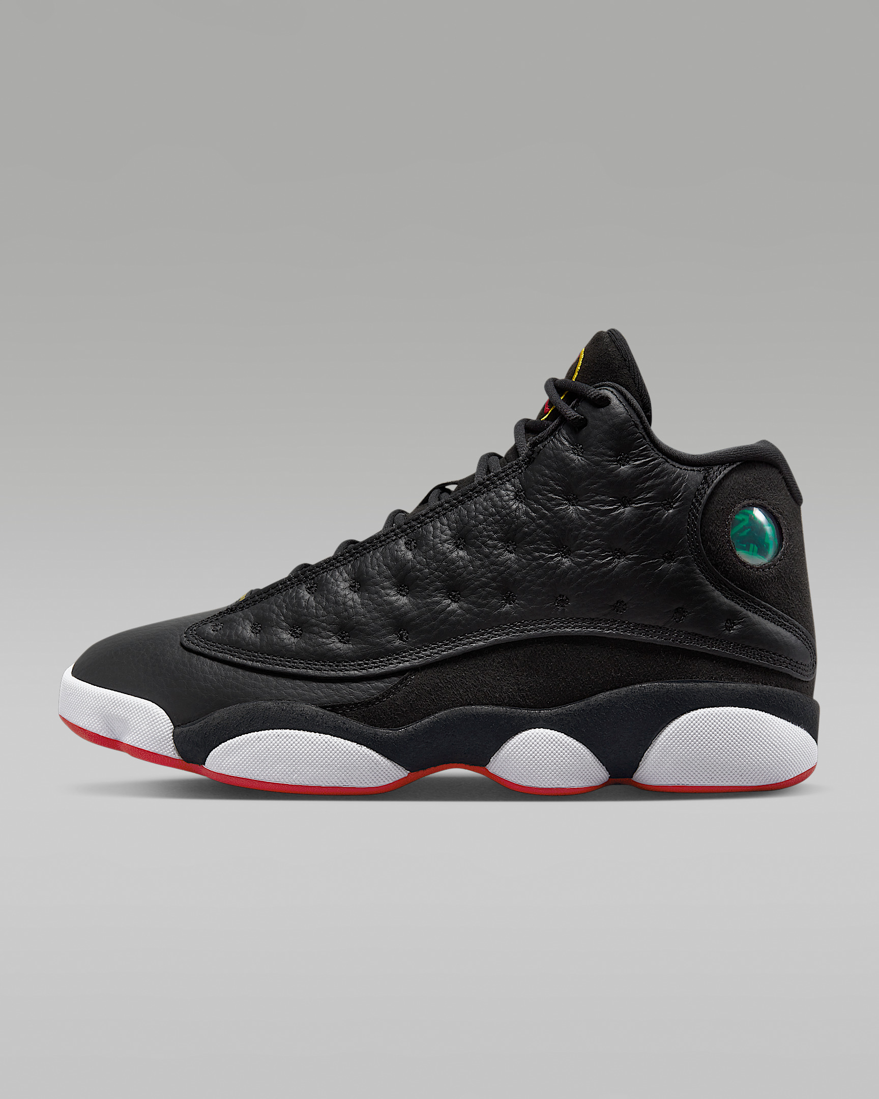 The Air Jordan 13 Retro brings back the memorable game shoe that Michael Jordan wore during the '97-98 season, all the way to his 6th championship title. All the classic details are there like the quilted overlay, iconic sculpted midsole and holographic eye. Benefits - Genuine leather and textile materials in the upper. - Phylon midsole with encapsulated Zoom Air unit in the forefoot and heel. - Rubber outsole pods are strategically placed to optimize traction and flexibility. Product Details - Not intended for use as Personal Protective Equipment (PPE) - Shown: Black/White/True Red - Style: 414571-062