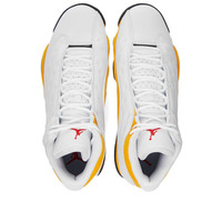 Nike Jordan introduces a brand-new colourway to Michael Jordan’s thirteenth signature shoe – the Air Jordan 13 “Del Sol”. Dressed in electric orange, white and black, the pair’s sporty hi-top design is crafted from an array of smooth white leather panels – with a matching toe, tongue and liner – while yellow suede overlays add a well-needed pop of colour. The design is supported by a bouncy rubber outsole – to propel your step – while a signature red Jumpman motif peaks out of the eye stay as a nod to the basketball-inspired brand's heritage. - Leather Uppers - Suede Overlays - Rubber Outsole - Style Code: 414571-167