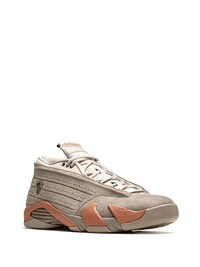 x CLOT Air Jordan 14 Retro Low "Terra Blush" sneakers Amp up your sneaker game. Designed in collaboration with Chinese brand CLOT, these Jordan 14 low sneakers from Jordan mark their fifth collaboration of the sneaker model. Inspired by clay warrior statues that were said to protect China's Emperor at his burial in 213 B.C these sneakers gain their colourway from The Terracotta Army and their earthy tones. The upper was designed to mimic the armour found on each statue, while a red-stitched medallion adds to the historic theme. Highlights - Sepia stone/terra blush - Leather - Round toe - Ridged rubber sole - Front lace-up fastening - Branded insole - Panelled design - Suede trim - These styles are supplied by a premium sneaker marketplace. stocking only the most sought-after footwear, they source and curate some of the most hard to find sneakers from around the world. Imported Composition Suede 100%