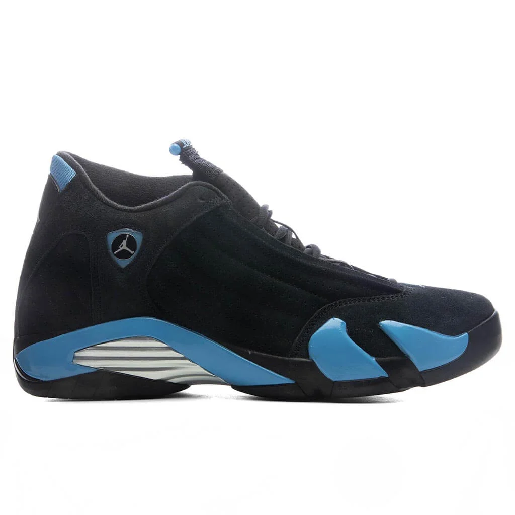 DUE TO THE NATURE OF THIS PRODUCT, ALL SALES ARE FINAL. THIS PRODUCT DOES NOT QUALIFY FOR DISCOUNTS OR SPECIAL PROMOTIONS. - Brand: Air Jordan 14 Retro - Model: 'University Blue' - Category: Lifestyle/Performance Sneakers - Colorway: Black/White/University Blue - Upper Material: Nubuck - Midsole: Phylon - Branding: Jumpman Emblem - Construction Notes: Embedded Nylon Chrome Shank Plate - Full-Length Rubber Outsole - Sizing: All sizes are listed in U.S. Men's sizing unless stated otherwise - Style No: 487471-007