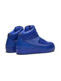 Air Jordan 2 Retro Don C "Varsity Royal" sneakers Don C got the honor of teaming up with Jordan Brand for a rare Air Jordan 2 collab in 2015, featuring the classic silhouette remodeled in his signature premium leather and quilted detailing. The shoe was presented in a vibrant royal blue colorway from top to bottom with just a touch of gold for the heel Nike logos. This extremely limited release sold out instantly, and is now perhaps the most coveted version of the Air Jordan 2 ever. Imported Composition Calf Leather 100%