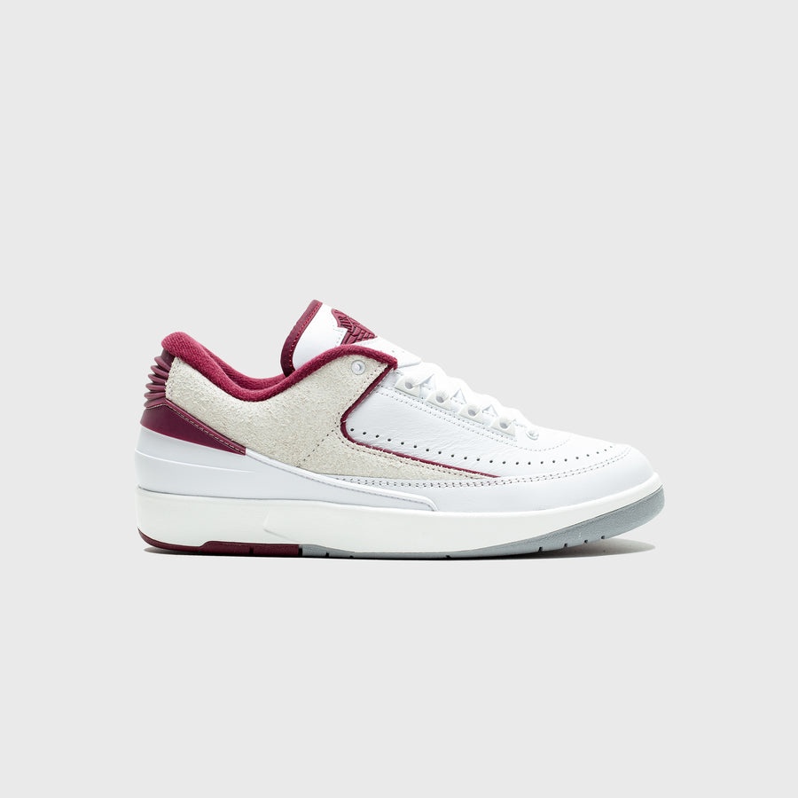 - DV9956 103 - White/Cherrywood Red-Lt Steel Grey - Jordan brings back the polarizing Air Jordan 2 Low - White leather upper - Steel grey suede overlays - White leather tongue with TPU Air Jordan "WINGS" emblem - White plastic eyelets - Cherry wood TPU heel counter with Cherry wood TPU heel cap - White foam midsole - Grey and Cherry wood rubber outsole