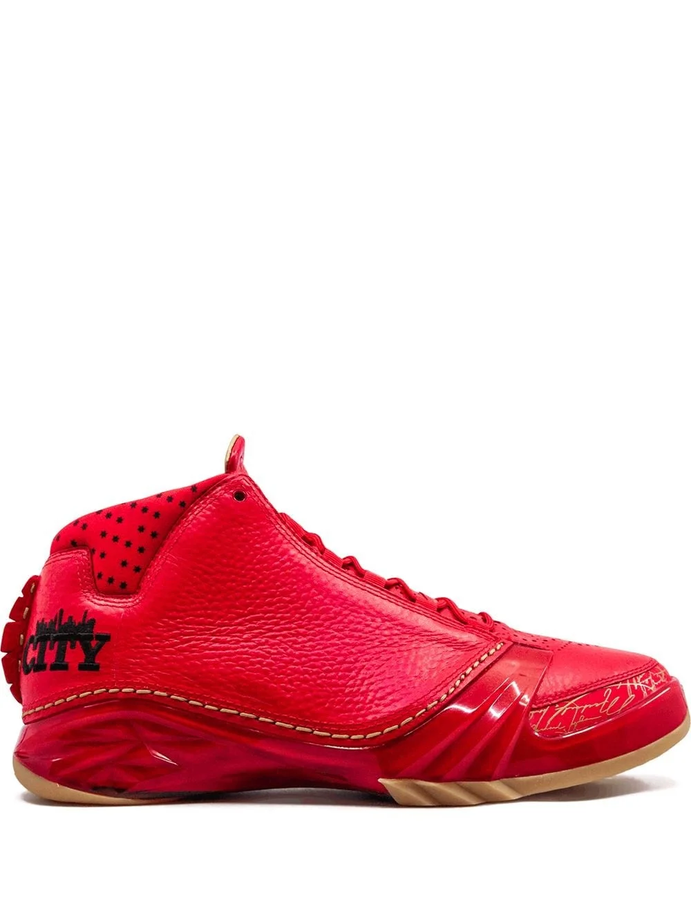 Air Jordan 23 "Chicago" sneakers Sold exclusively in Chicago, this bold 2015 release of the Air Jordan XX3 features an all-red upper with black accents to reference the Bulls squad. They’re topped off with special “Chi-City” branding on the heels and finished with gum rubber soles. Highlights - University red/gum yellow - Leather - Round toe - Front lace-up fastening - Embroidered motif - Logo-embossed tongue - Flat rubber sole - Release date: october 24th, 2015 - These styles are supplied by a premium sneaker marketplace. stocking only the most sought-after footwear, they source and curate some of the most hard to find sneakers from around the world. Imported Composition Calf Leather 100%