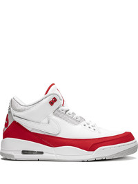 Air Jordan 3 Retro Tinker "Air Max 1 - University Red" sneakers Supplied by a premier sneaker marketplace dealing with unworn, already sold out, in-demand rarities. Each product is rigorously inspected by experienced experts guaranteeing authenticity. The Air Jordan 3 Tinker “Air Max 1 - University Red” is a special edition of the alternate Jordan 3 design. Based off of Tinker Hatfield’s original sketch for the Air Jordan 3 that featured a Nike Swoosh, this colourway is inspired by another one of Hatfield’s greatest hits, the Air Max 1. The Jordan 3 Tinker is constructed with colours and materials that resemble the OG red colourway of the Air Max 1, with a white leather upper, red felt, and light grey accents. This edition also varies from the previous Jordan 3 Tinker releases by including interchangeable Swooshes. The Air Jordan 3 Tinker “Air Max 1 - University Red” released on March 30, 2019. Please note this item is unisex and sold in men's sizing. Imported Composition Calf Leather 100%
