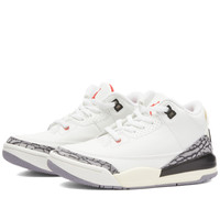 The AJ3 will forever be associated with dunking success and also for its unveiling of the iconic elephant print, designer Tinker Hatfield and of course the one and only Jumpman. Out of all the releases, the White/Cement colourway is arguably the most coveted of all time and is the one that MJ actually donned on the hardwood in ‘87. Air Jordan steps back in time and honours the last 35 years with this 'White Cement Re-imagined' drop, with an aged aesthetic that redefines timeless. These kids kicks receive the retro treatment, made to look a little aged, featuring a yellowed vintage tinge through the heel tabs, midsoles and eyelets. Elsewhere retains the iconic design details, with perforated leather uppers and the legendary elephant print at the toe and heel. Finishing off the history-reworked model is splashes of Sail and Fire Red at the Jumpman embroidered tongue and insoles, keeping the OG design alive for future sneakerheads in the works. - Leather Uppers - Suede Overlays - Rubber Outsole - Style Code: DM0966-100
