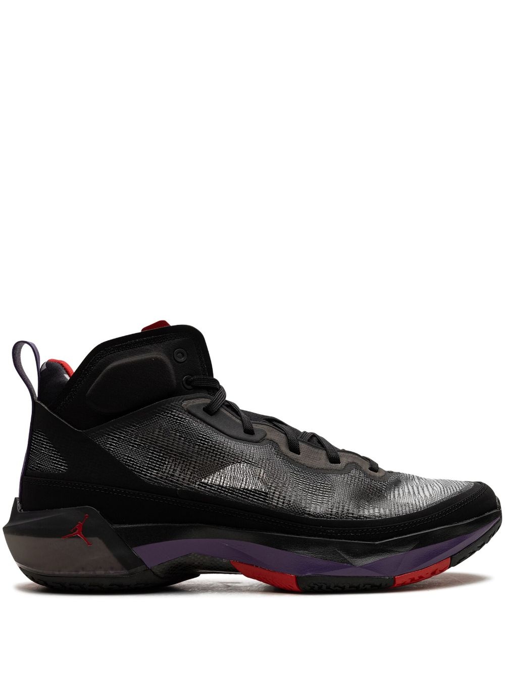 Air Jordan 37 "True Red" sneakers Jordan looks to the Air Jordan 7 to inspire the 37. Detailed with a panelled construction, the pair is crafted to a supportive ankle-length silhouette and finished with comfortable padding. Highlights - Black/red - Panelled design - Mesh detailing - Signature jumpman motif - Pull-tab at the heel - Round toe - Front lace-up fastening - Ankle-length - Chunky rubber sole - These styles are supplied by a premium sneaker marketplace. stocking only the most sought-after footwear, they source and curate some of the most hard to find sneakers from around the world. Imported Composition Sole: Rubber 100% Outer: Mesh 100% Lining: Fabric 100%