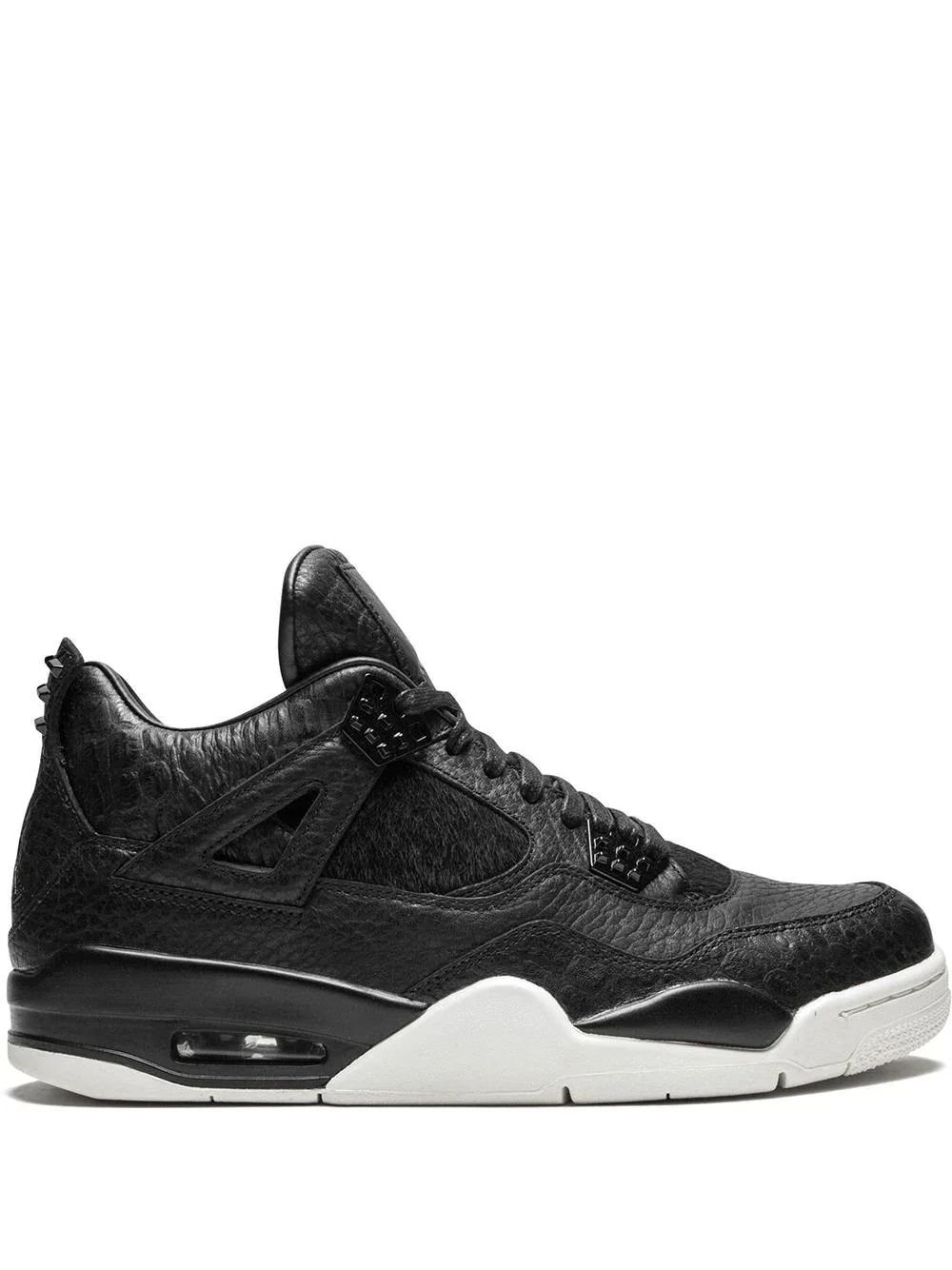 Air Jordan 4 Retro Premium "Pinnacle" sneakers The Air Jordan 4 receives its most premium iteration ever with this ‘Pinnacle’ release featuring a reptile-embossed black leather upper with pony hair detailing. The stylish all black upper is contrasted with a solid white outsole, while quilted leather insoles add the final high-class touch. Imported Composition Outer: Calf Leather 100%, Metal 100% Lining: Calf Leather 100% Sole: Rubber 100% SIZE & FIT Measurement HEEL 1.57 in(4 cm) Sole height 0.78 in(2 cm)