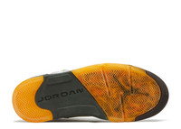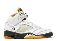 The Air Jordan 5 Retro 'Cinder' treats Tinker Hatfield’s original 1990 design to an eye-catching makeover, highlighted by shiny white patent leather construction on the upper. The pristine finish is distinguished by contrast stitching and an unexpected blend of earth tones, including an olive green midsole and brown padded tongue. A multi-color pattern on the collar lining is the finishing touch. SKU: 136027 121 Colorway: White/Dark Cinder-Dark Army-Del Sol Release Date: 6/27/09