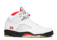 Originally releasing as part of the Countdown Pack alongside an Air Jordan 18, the Air Jordan 5 Retro ‘Countdown Pack’ appears with a familiar ‘Fire Red’ look similar to the OG Jordan 5. The signature color appears on the lining, branding and midsole detailing, while a silver tongue complements the look. The black midsole, which houses Air in the heel, gives way to a translucent outsole. SKU: 136027 163 Colorway: White/Fire Red-Black Release Date: 6/21/08