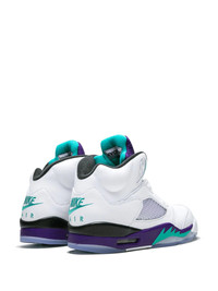 Jordan 5 Retro NRG "Fresh Prince Of Bel-Air" sneakers The Air Jordan 5 “Fresh Prince” is a special edition of the iconic “Grape” colourway that was created to celebrate Will Smith’s 50th birthday in 2018. Smith’s character on the beloved television show "The Fresh Prince of Bel-Air" famously wore the Air Jordan 5 in early episodes without shoelaces. As a reference to that style, these Jordan 5s are designed to be worn without shoelaces and are constructed without lace eyelets. Other "Fresh Prince" details include “West Philadelphia” embossed onto each tongue, OG Nike Air branding on each heel, and graphic insoles that have “Air Jordan” printed on them in a Fresh Prince-style graffiti font. The Air Jordan 5 “Fresh Prince” released in limited quantities in September 2018. Please note this item is unisex and sold in men's sizing. Imported Composition Calf Leather 100%