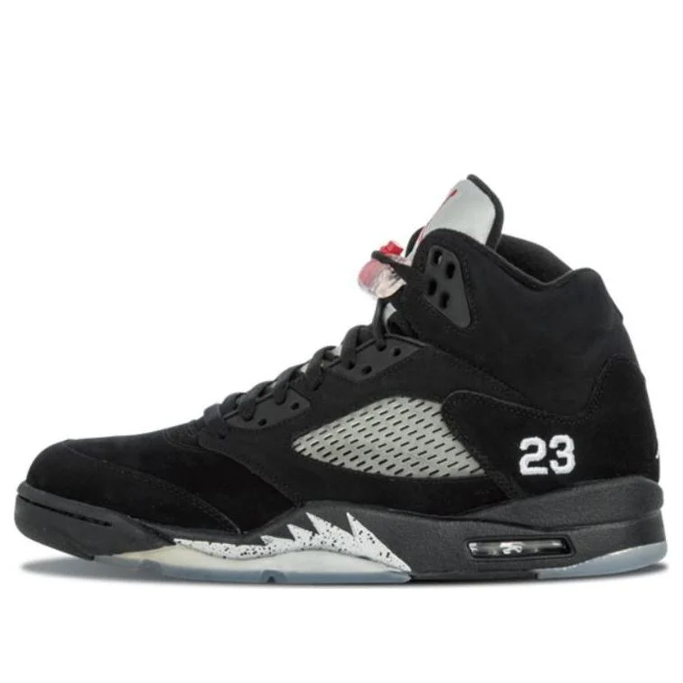 PRODUCT INFORMATION Model No: 136027-010 Closure: Lacing Release Date: 2011-08-19 Upper Material: Leather Thickness: Regular Sole Style: Sports Colorway: Black/Varsity Red/Metallic Silver Heel Type: Flat heel Toe Type: Round Toe Upper: High Top Sole Material: Rubber Sole Functionality: Slip-resistant/Lightweight Season: All Season Color: black Series: Air Jordan 5 Sub Series: Air Jordan 5 High Nickname: Metallic Occasion: lifestyle The Air Jordan 5 Retro 'Metallic' 2011 offers a classic look with a modern twist. First released in 1990, this updated version features a black suede upper with a reflective 3M tongue. The signature 'Jumpman' logos are present at the heel and tongue, with an embroidered '23' at the ankle. This timeless sneaker is perfect for any Jordan fan or collector.