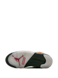 Air Jordan 5 Retro Supreme "Camo" sneakers Without a doubt the biggest, most hyped, and now most sought after collaboration sneaker release of 2015, New York's Supreme joined forces with Jordan Brand for the monumental release of the Air Jordan 5. The boldest of the three colorways released, this version features a desert camo upper with Supreme detailing. Imported Composition Lining: Rubber 100% Outer: Canvas 100%