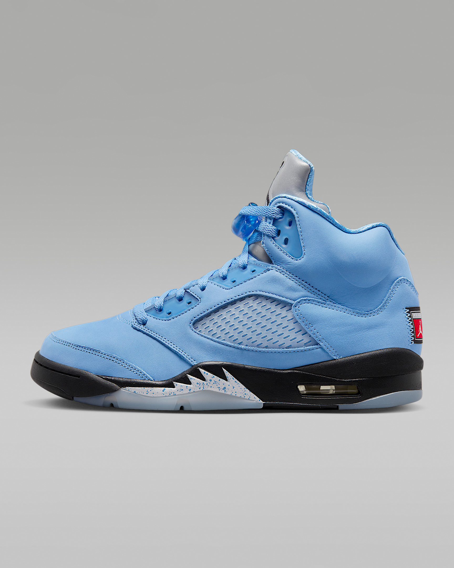 Year after year, season after season, the AJ5 has been at the heart of your favorite 'fits. Now, the beloved Tinker Hatfield design is back with a collegiate colorway that celebrates MJ's early days. University Blue pays homage to Jordan's alma mater from the upper to the insole, accented by a "Team Jordan" woven label on the back. An updated liner brings true on-foot bliss and flawless details from the original—like the side vents, spiky midsole, and lace lock—tie it all together with the classic allure you love. Benefits - Leather in the upper offers durability and structure. - Encapsulated Nike Air-Sole unit provides lightweight cushioning. - Rubber outsole gives you the traction you need. Product Details - Removable lace lock - Not intended for use as Personal Protective Equipment (PPE) - Shown: University Blue/White/Black - Style: DV1310-401
