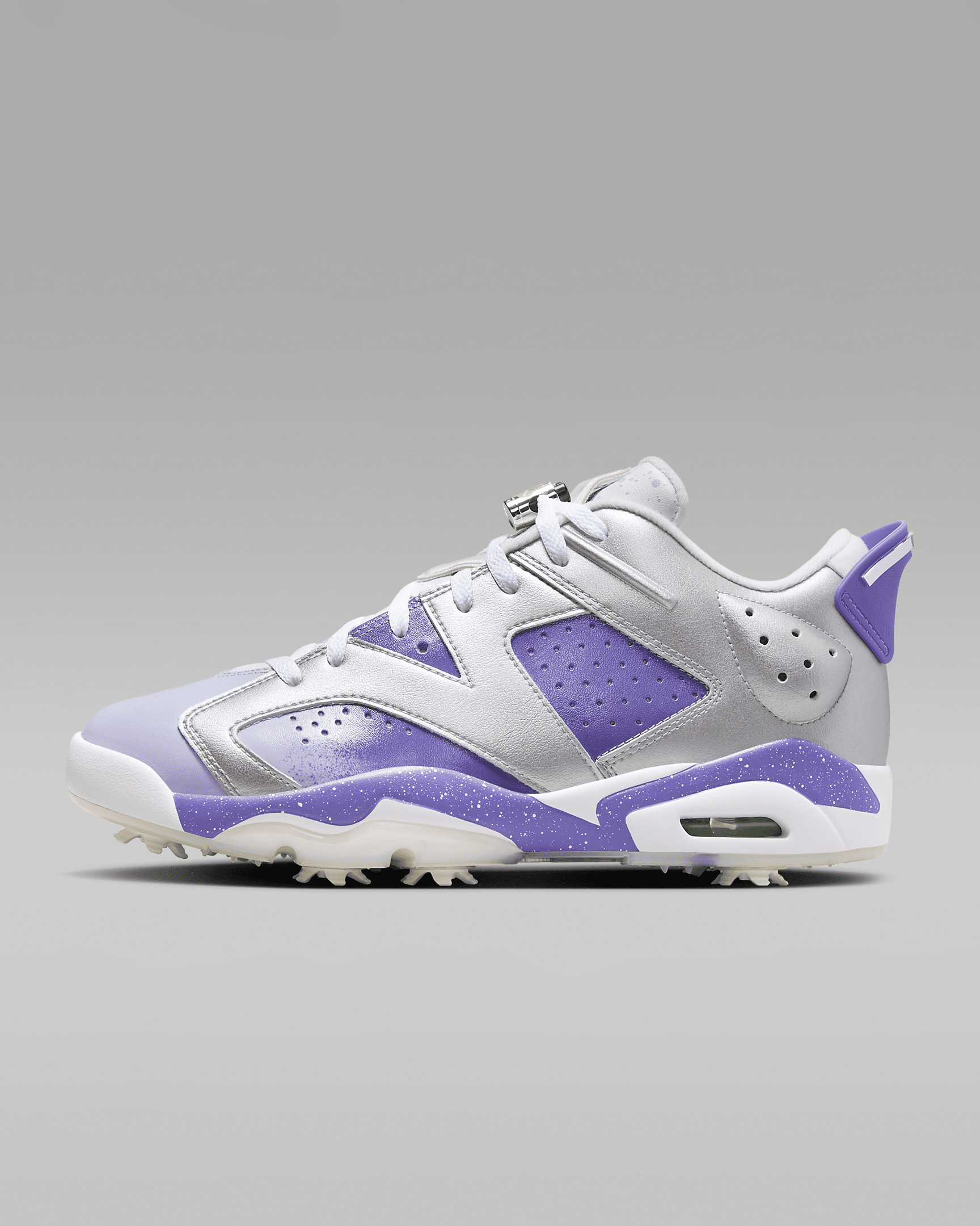 Feel unbeatable from the tee box to the final putt in a design that's pure MJ: speed, class and laden with true early-'90s touches, like visible Air and a translucent plastic sole that stand the test of time. This model fuses the strut of MJ’s 1st championship with some of our best golf technology, helping you make a statement of confidence when it comes time to tame the course. This special design celebrates the City of Angels, where the summertime aura is always immaculate and electric, yet laid-back, just like the host of 1 of the nation’s biggest events. More Benefits - Provides water-repellency in all weather conditions. - Lightweight foam midsole provides comfort and stability throughout your round. Product Details - 2-year waterproof warranty - Cushioned insole - Shown: Metallic Silver/Action Grape/White/Oxygen Purple - Style: FD0205-055