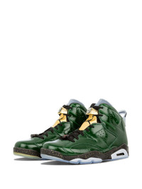 Air Jordan 6 Retro "Champagne" sneakers Whoever said the perfect pair of sneakers doesn't exist has clearly never seen these. Crafted from patent leather, the Air Jordan 6 Retro champagne from Jordan fuse Michael Jordan's 6th signature silhouette with flashes of pin green and champagne gold-tone leather. See, it's real. Featuring an ankle length, a lace-up front fastening, decorative perforations, a ridged rubber sole and metallic embellishments. Imported Composition Outer: Patent Leather 100% Lining: Patent Leather 100% Sole: Rubber 100%