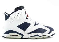 The Jordan 6 celebrates the 2000 Olympics with a USA theme, featuring a white and navy upper with red accents and Jumpman branding. The silhouette itself with its classic and aerodynamic shape at the time draws inspiration from the German sports car of MJ. This colorway was worn during the Summer Games by Jordan Brand athletes Vin Baker and Ray Allen. SKU: 136038 461 Colorway: Midnight Navy/Varsity Red-White Release Date: 9/15/00