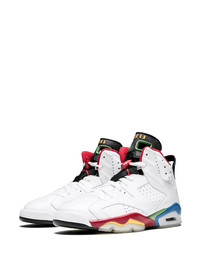 Jordan Olympic 6 sneakers This special colorway of the Air Jordan 6 Retro was released in 2008 for the Olympic games in Beijing. The iconic silhouette with crafted with an all-white patent leather upper with a multicolored midsole and accents inspired by the colors of the olympic rings. Imported Composition Outer: Leather 100% Sole: Rubber 100%