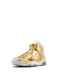 Air Jordan 6 Retro P1NNACLE "Metallic Gold/White" sneakers You're always a winner when you have a pair of Jordans. Crafted from white and gold-tone leather and rubber, these Air Jordan 6 Retro pinnacle from Jordan are sure to make you feel like you've won a first-place medal. Your own trophy. Featuring a round toe, a high ankle, a flat sole, a metallic sheen, a lace fastening and a logo patch at the tongue. Made in Italy Composition Calf Leather 100%