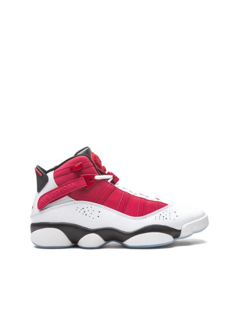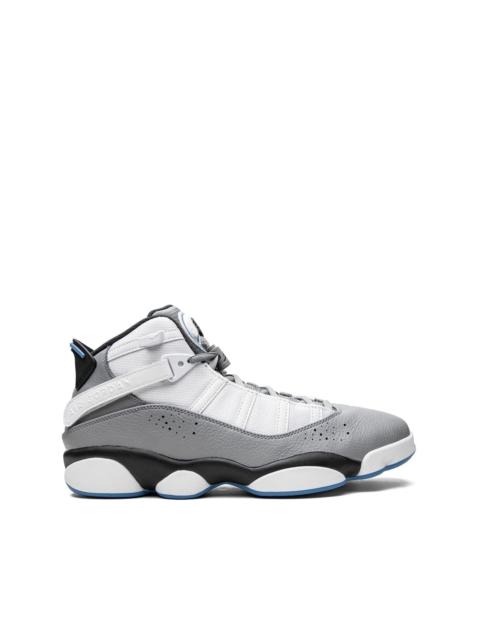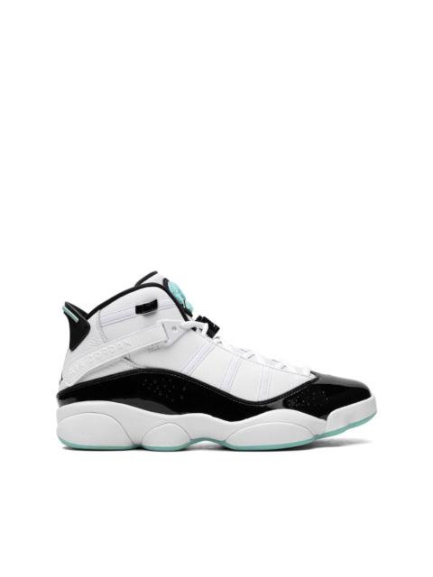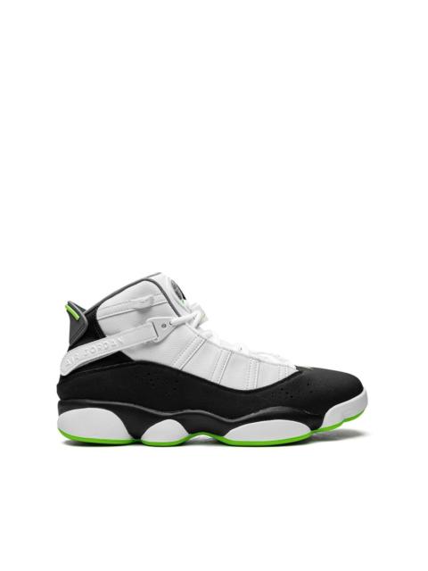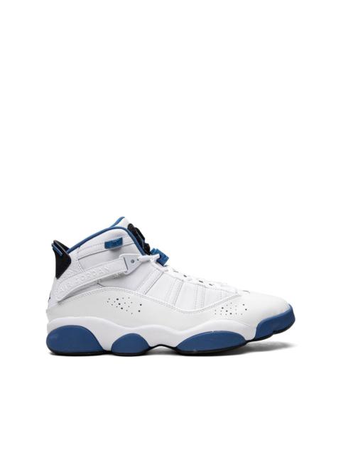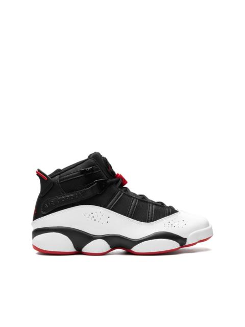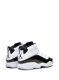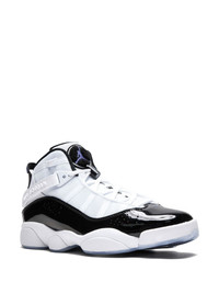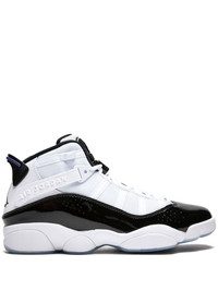 Jordan 6 Rings "Concord" sneakers The Air Jordan 6 Rings is a tribute to the sneakers worn by Michael Jordan during his six NBA championships. This model features a high-top silhouette constructed in white leather on the upper and is highlighted with contrasting black patent panels. Underneath, a Phylon midsole and rubber outsole complete the design. Imported Composition Outer: Calf Leather 100%, Fabric 100% Sole: Rubber 100% Lining: Fabric 100%