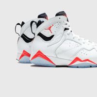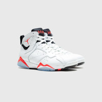 - CU9307 160 - White/Crimson-Black - Jordan Brand brings a brand new take on the Air Jordan 7 with a colorway most known to be associated with its predecessor, Air Jordan 6 - White tumbled leather upper - White and Black neoprene tongue with Crimson "AIR JORDAN" embroidery - Crimson "JUMPMAN" logo embroidery on the ankle - Black woven heel pull tab with tpu "23" emblem - White foam midsole with crimson & white glossy accents - Icy translucent rubber outsole
