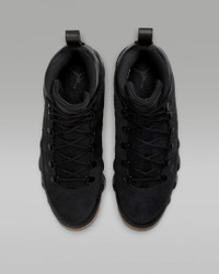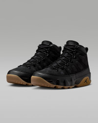 The Air Jordan 9 Retro Boot combines elements from the Special Field Boot and MJ's iconic ninth signature game shoe, originally designed by Tinker Hatfield and released in 1993. The rugged design is built to handle rough weather without breaking from its classic style. It's outfitted with durable leather in the upper, a gusseted tongue, metal eyelets and heavy tread. Air Zoom cushioning in the heel and forefoot add a bouncy buffer between your feet and the ground beneath you. Benefits - Sticky rubber and aggressive traction give you grip on a variety of surfaces. - Air Zoom units provide lightweight cushioning. - Metal eyelets enable quick lacing. Product Details - Leather, textile and plastic in the upper - Molded foam sockliner - Round laces - Heel pull - Not intended for use as Personal Protective Equipment (PPE) - Shown: Black/Gum Light Brown/Black - Style: AR4491-025