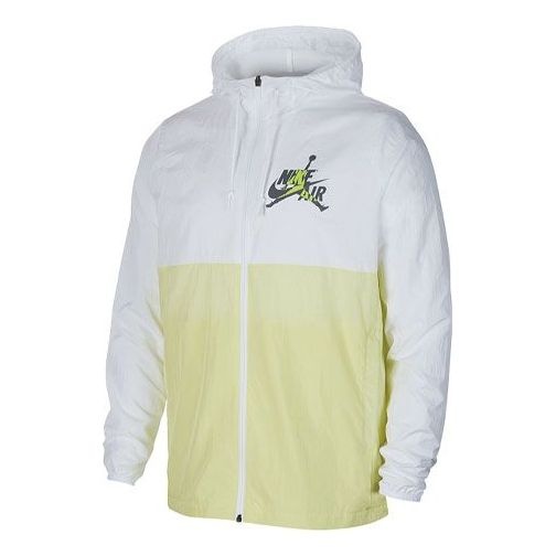 Air Jordan Alphabet Printing Basketball Sports Hooded Jacket White Yellow CK2218-100