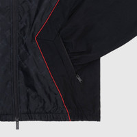- HV0554 010 - Black/Gym Red - 100% Nylon - Mesh lining - Jacquard print throughout - Front two-way zipper closure - Two front pockets with a zipper closure - Contrast piping on the front and back - Embroidered "JUMPMAN" logo on the chest - Elasticated cuffs and hem - Pullover hood - Loose fit