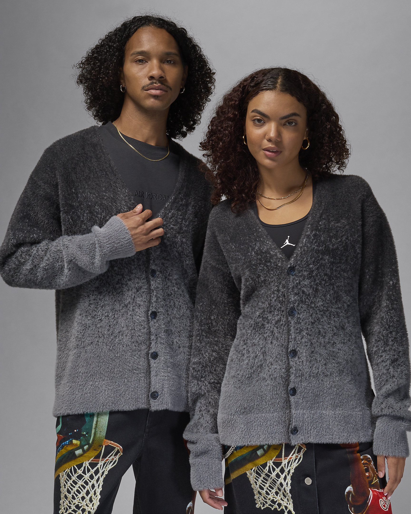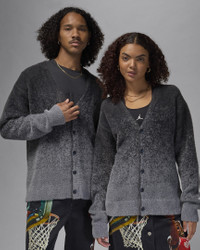 Elevate your casual game with Air Jordan. A soft and fuzzy knit fabric and a gradient colorway give this roomy cardigan a distinct look and feel. Consider it the new star of your wardrobe. Benefits - Fuzzy knit fabric has a soft feel and premium look. - Slightly dropped shoulders and a loose fit provide a comfortable, confident feel. Product Details - 62% nylon/27% rayon/11% polyester - 5-button design - Hand wash - Imported - Shown: Dark Smoke Grey - Style: FV7426-070 SIZE & FIT Female model is wearing size S and is 5'9"175cm Male model is wearing size M and is 6'2"188cm Loose fit: roomy and relaxed