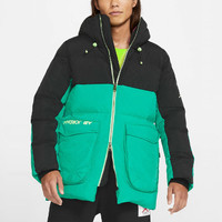Air Jordan Casual Sports hooded Stay Warm Down Jacket Black Green Colorblock CK6662-011