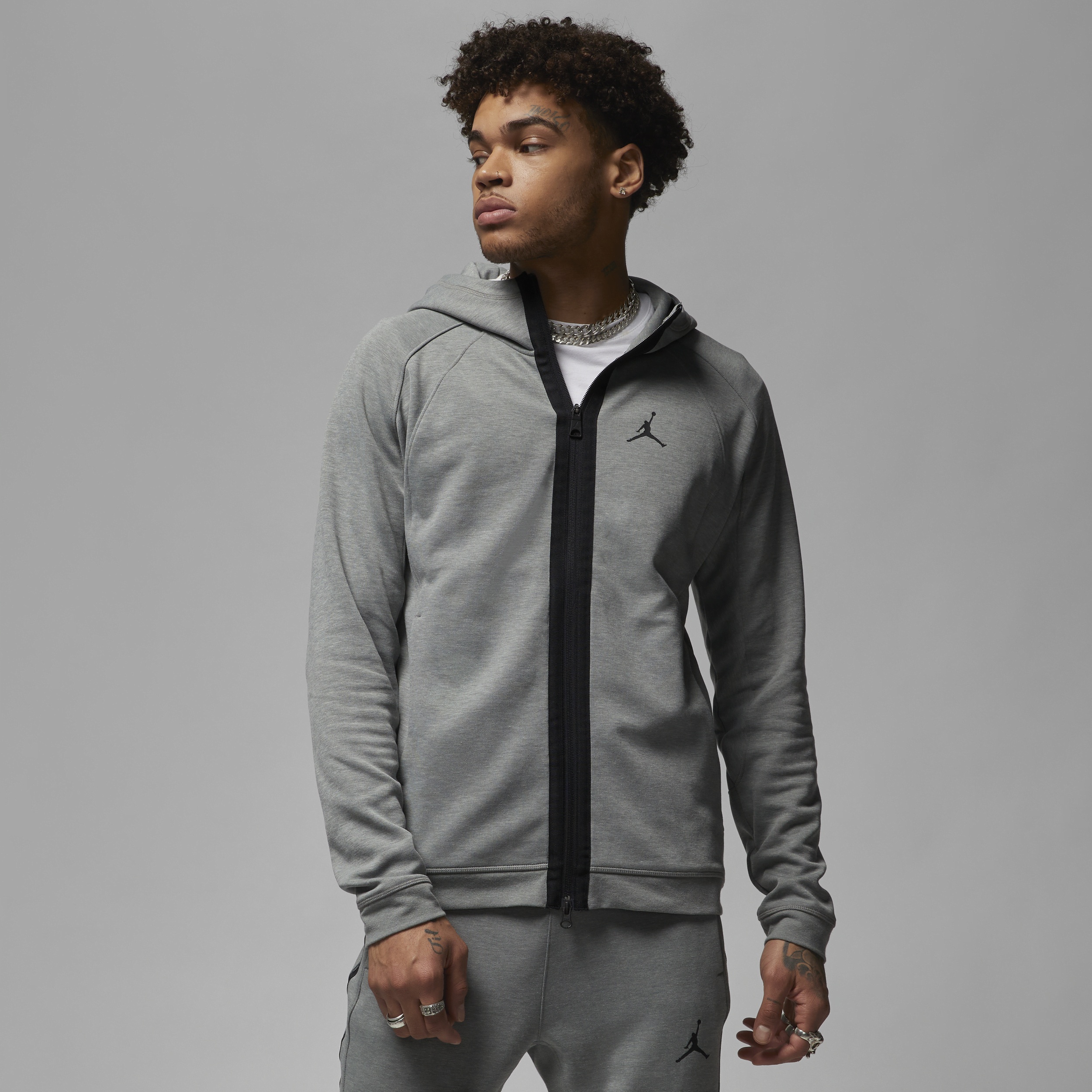 Zip up and get ready to perform in the Jordan Dri-FIT Sport Statement Air Fleece Full-Zip. Featuring a performance-driven design, this jacket takes design cues from MJ's iconic tracksuit with concealed pockets that blend into the Wings' lines. The Nike Dri-FIT technology takes care of moisture absorption, while the side pockets offer secure storage space for your essentials. Equip yourself for prime performance in the Jordan Dri-FIT Sport Statement Air Fleece Full-Zip. Jordan Dri-FIT Sport Statement Air Fleece Full-Zip features: Full-zip design offers complete coverage. Ribbed cuffs and waistline maintain shape. Rubber print Jumpman logo adds an authentic touch. Machine wash. Body: 78% polyester/22% cotton; Hood lining: 78% polyester/22% cotton. Imported.