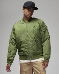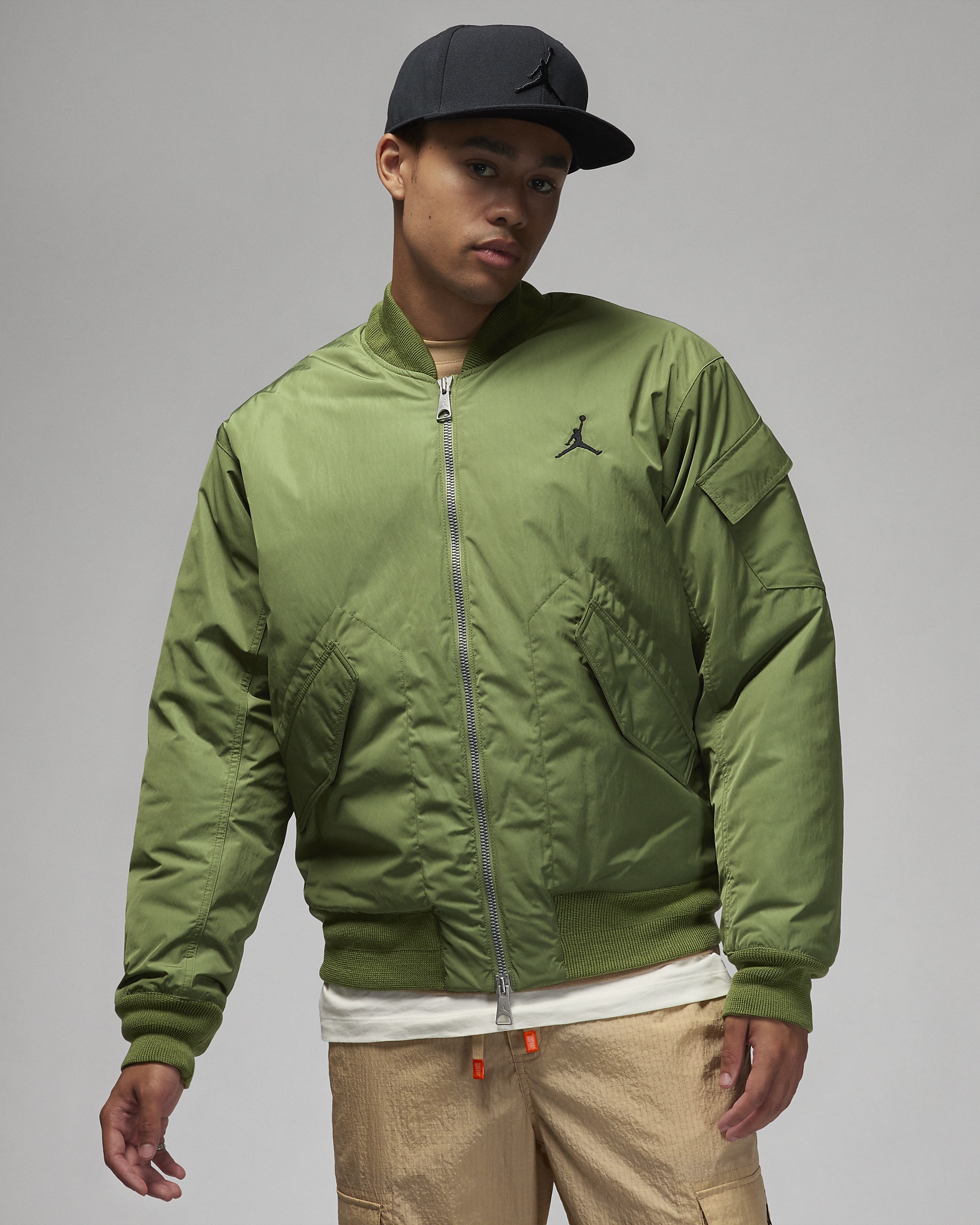 Your classic bomber jacket gets a Jordan makeover so you can stay fly for fall. Lightweight, water-repellent fabric keeps the weather out while insulation helps you stay cozy. Gusset construction on the back shoulders gives you flexibility without sacrificing the jacket's cut (or your style). And that arm pocket? It's an eye-catching extra storage moment. Benefits - Snap closure pockets store your keys and phone. - Ribbing at hem, collar and cuffs helps keep the elements out. Product Details - Body: 71% polyester/29% nylon. Lining: 100% polyester. Fill: 100% polyester. - Embroidered Jumpman logo - Machine wash - Imported - Shown: Sky J Light Olive/Black - Style: FB7316-340 SIZE & FIT Standard fit: easy and traditional