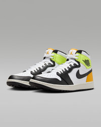 Feel unbeatable, from the tee box to the final putt. Inspired by one of the most iconic sneakers of all time, the Air Jordan 1 G is an instant classic on the course. With Air cushioning underfoot, a Wings logo on the heel and an integrated traction pattern to help you power through your swing, it delivers all the clubhouse cool of the original AJ1—plus everything you need to play 18 holes in comfort. Product Details - 1-year waterproof warranty - 2 sets of laces - Shown: White/University Gold/Volt/Black - Style: DQ0660-105