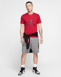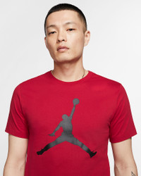 Soar out the door in the Jordan Jumpman T-Shirt. It's made from soft, comfortable fabric with an easy and relaxed fit. Benefits - Everyday fabric feels soft and comfortable. - The fit is relaxed and easy to wear. Product Details - Jordan Standard fit - Ribbed collar - Printed graphic - 50-100% cotton/0-50% polyester - Material percentages may vary. Check label for actual content. - Machine wash - Imported - Shown: Gym Red/Black/Black - Style: CJ0921-687 SIZE & FIT Standard fit: easy and traditional