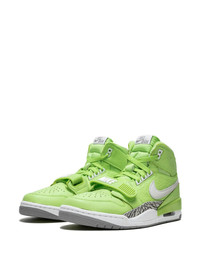 Air Jordan Legacy 312 NRG sneakers In 2018 Don C teamed up with Jordan Brand once again for the Jordan Legacy 312. This time it wasn’t just a special colourway of a classic model Don C worked on. The luxury sportswear creator designed his very own silhouette. Taking elements from a few of Don C's favourite retro basketball sneakers, the Legacy 312 combines the Air Jordan 1 and Air Jordan 3, while also referencing the Nike Air Force STS with the midfoot elephant print panels and the Air Alpha Force Low with the midfoot strap. This Legacy 312 “Ghost Green” available here features a unique light green shade across the leather upper with white and grey accents. Imported Composition Calf Leather 100% SIZE & FIT Measurement HEEL 1.18 in(3 cm) CIRCUMFERENCE 11.81 in(30 cm) Sole height 1.18 in(3 cm) HEIGHT 4.72 in(12 cm)