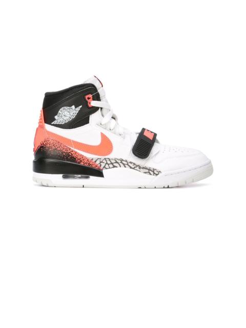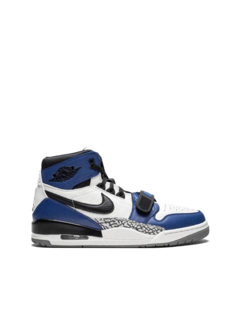 Air Jordan Legacy 312 NRG "Storm Blue" sneakers Combining elements of a few of his favourite retro basketball sneakers, Don C teamed up with Jordan Brand to create the Jordan Legacy 312 in 2018. The bold silhouette is primarily a mix of the Air Jordan 1 and Air Jordan 3, but Don C also incorporated some more obscure Nike basketball sneakers into the formula. The midfoot elephant print panelling was inspired by the Air Force STS, and the midfoot strap comes from the Air Alpha Force Low. This Jordan Legacy 312 “Storm Blue” hints at the original “Royal” colorway of the Air Jordan 1, while also calling to mind the legendary Fragment x Air Jordan 1. Imported Composition Calf Leather 100% SIZE & FIT Measurement HEEL 1.18 in(3 cm) CIRCUMFERENCE 11.81 in(30 cm) Sole height 1.18 in(3 cm) HEIGHT 4.72 in(12 cm)
