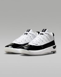 A modern mash-up made for everyday wear, the Max Aura 7 remixes two icons of style. Wavy lines near the laces nod to the AJ10, while ridges on the sides and shiny patent leather accents honor the AJ11. It's Jordan heritage reimagined. Benefits - Real leather works with sturdy textiles to add durability and structure to the upper. - Plush and comfortable, Max Air cushioning has just the right amount of support. - Foam midsole adds lightweight cushioning. - Rubber in the outsole helps give you durable traction. Product Details - Pull tab on heel - Embroidered details - Tongue label inspired by AJ11 - Shown: White/Summit White/Black - Style: HQ2091-100