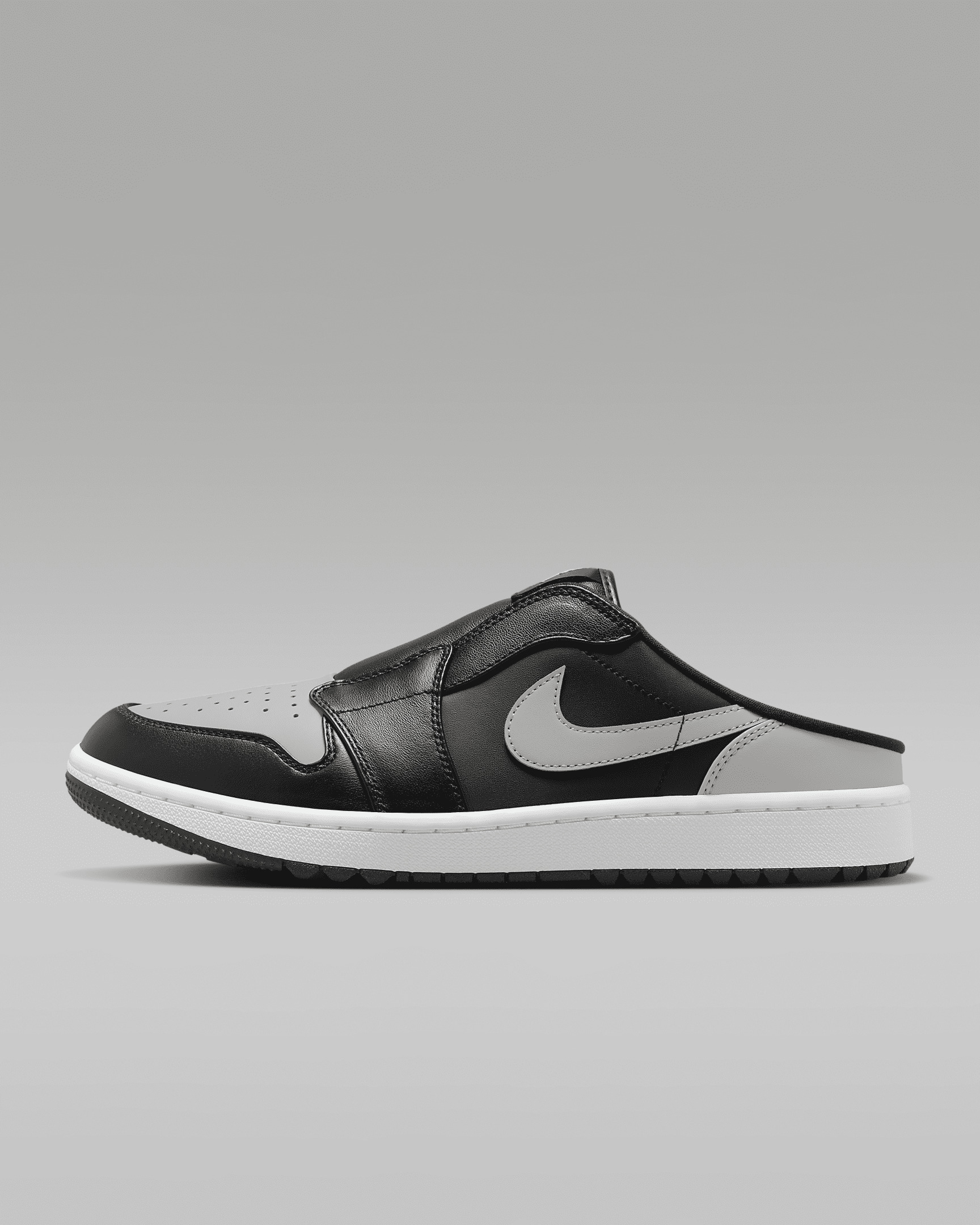 Slide into pre- and post-match paradise, whether you’re sailing to the 19th hole after a career low or ramping up for the round ahead in the all-new Jordan 1 G Mule. It’s easily accessible, eye-popping eccentric and complete with timeless Jordan ethos and comfort. More Benefits - Full-grain leather is pierced with small holes for better breathability. - The sticky outsole gives you great grip on the journey to and from the course. Product Details - Shown: Black/White/Medium Grey - Style: FJ1214-003