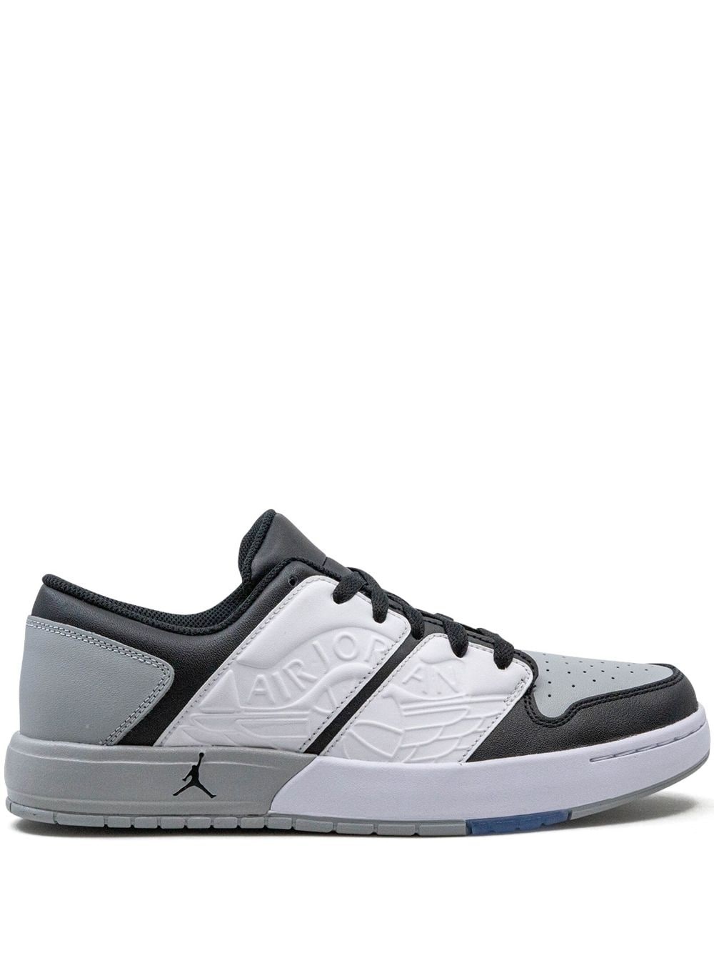 Air Jordan Nu Retro 1 "White / Grey" sneakers These Jordan Nu Retro 1 low sneakers are sculpted to a sleek low-top silhouette and are embossed with the signature Air Wings on the sidewalls, while the signature Jumpman logo lands on the two-tone sole. Highlights - White/grey - Embossed logo to the side - Signature air jordan wings logo - Signature jumpman motif - Perforated toebox - Round toe - Front lace-up fastening - Flat rubber sole - These styles are supplied by a premium sneaker marketplace. stocking only the most sought-after footwear, they source and curate some of the most hard to find sneakers from around the world. Imported Composition Sole: Rubber 100% Lining: Fabric 100% Outer: Fabric 100%
