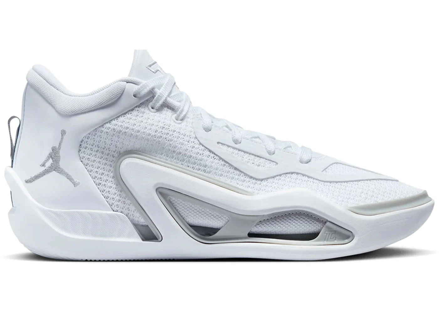 The Jordan Tatum 1 Pure Money stands out with a unique silhouette, drawing inspiration from the 2006 Air Jordan 4 Pure Money and faithfully embracing the original Air Jordan 4's name and design elements. The Pure Money Air Jordan Tatum 1 boasts a predominantly clean white appearance throughout its woven, synthetic, and leather upper. Accents near the forefoot and heel, including the Jumpman branding, pay homage to the Pure Platinum eyelets featured on the retro version. The synthetic layers of the shoe alternate between a Pristine White and a complementary silver hue. The lines encircling the midsole feature a polished appearance, coordinating with the glossy elements on the tongue emblem, heel tab, and Jumpman logo on the lateral heel. The standout characteristic of the Jordan Tatum 1 Pure Money lies in its immaculate Pure Money aesthetic. This all-white theme, originally introduced in the Air Jordan 4 in 2006, offers versatility that effortlessly complements various styles. The sneaker debuted for $120 on September 5th, 2023. - Style FB2863-100/FQ1304-100 - Colorway White/Grey Fog-White - Retail Price 120 - Release Date 2023-09-05 - Featured false - Requester Leo W - Source account-management - Uploaded By MM