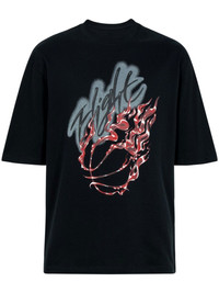 x Travis Scott T-shirt Jordan is back with another collaboration with American rapper Travis Scott. In this short-sleeve T-shirt, Scott reimagines the classic Flight logo with a neon effect - on the front - while fiery motifs with rhinestone embellishment decorate the back. Imported Composition Cotton 100%