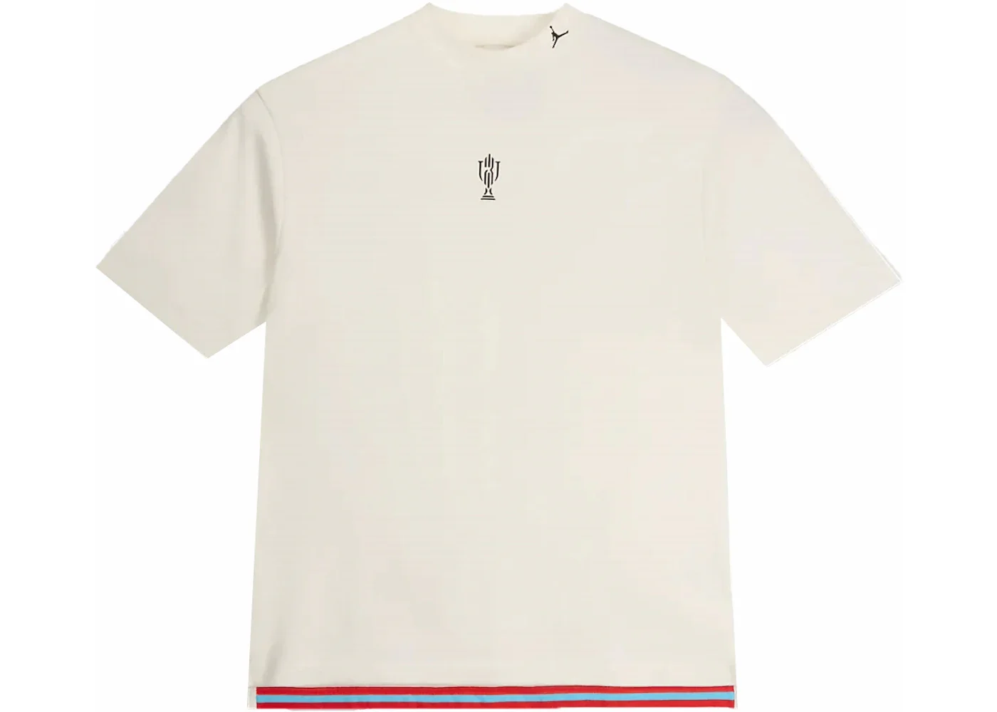 The Nike Jordan x Trophy Room Short-Sleeve Top Sail is a stylish and iconic-looking Sail-colored short-sleeve top. It was released in collaboration with the Trophy Room and Nike Jordan brands. The Trophy Room and Nike Jordan collaborated on a sneaker release, and this short-sleeve top in Sail also accompanied the news. Made with 37% polyester and 63% cotton, it has a rounded mock neck collar. The sleeves hang to about the elbow, slightly longer than on a t-shirt or polo shirt. This crisp and clean colorway sports a drop tail hem, where the shirt's back is just a bit longer than the front. Notice the black printed graphic branding hits a Jumpman icon on the collar and a Trophy Room logo on the front and center. The mock neck collar gives this shirt an air of elegance, making it stand out. The Nike Jordan x Trophy Room Short-Sleeve Top Sail retailed for $60 when it debuted on March 21, 2024. - Season SS24 - Color Sail - Release Date 2024-03-21 - Style FQ3844-133 - Retail Price 60 - Featured false - Requester Kelsey K - Uploaded By LL